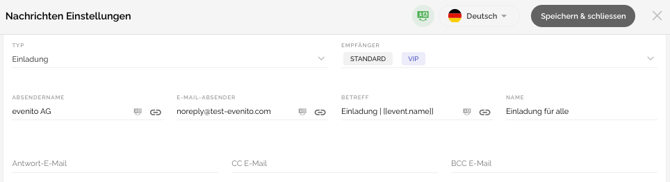 - Nachrichten-Einstellungen: Überprüfe die Absender-Einstellungen final. Achte hierbei auch auf die Betreff-Zeile oder eventuell genutzte Platzhalter in CC oder BCC.