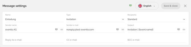 The message settings and the content of a message must always be maintained in all event languages. Messages are sent in the language stored in the corresponding contact.