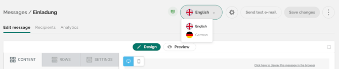 To transfer the design of a message from one language version to another language version, click on the three dots at the top right and select “Copy from another language”. The structure and settings of the message are transferred and only the texts need to be translated.